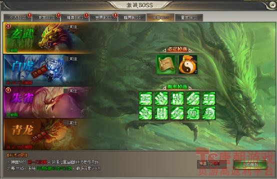 激战BOSS玩法,含括了游戏里大大小小各类BOSS掉落、刷新等信息