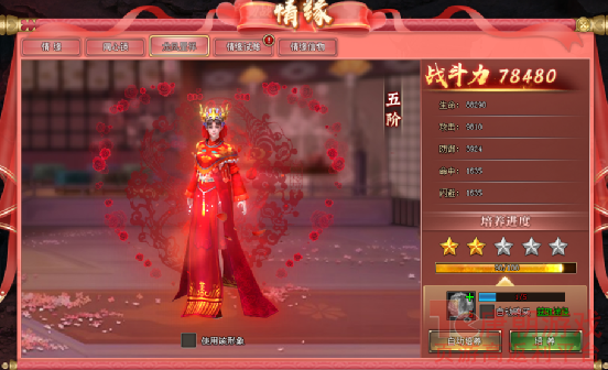 使用第三档次结缘时,将可获得特殊时装龙凤呈祥,激活后则可通过消耗龙凤丹进行培养升阶,获得属性加成