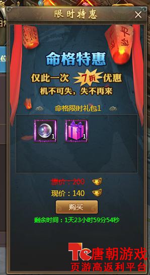 每种特惠活动有规定的活动时间,在活动时间内购买特惠礼包后可继续购买下一礼包(每种礼包限购买1次)