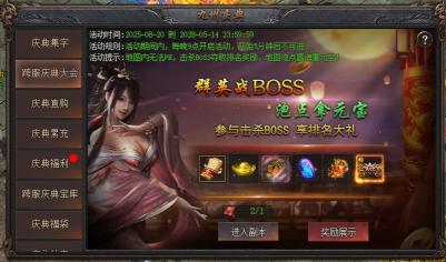 2、「庆典烟花大会」消耗门票,跨服世界BOSS,争夺庆福券;