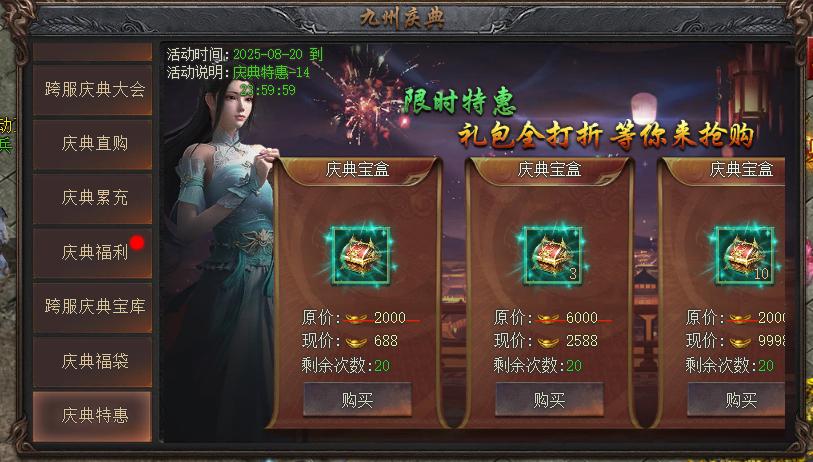 5、「庆典特惠」消耗元宝购买庆典福利礼盒,获取海量资源;