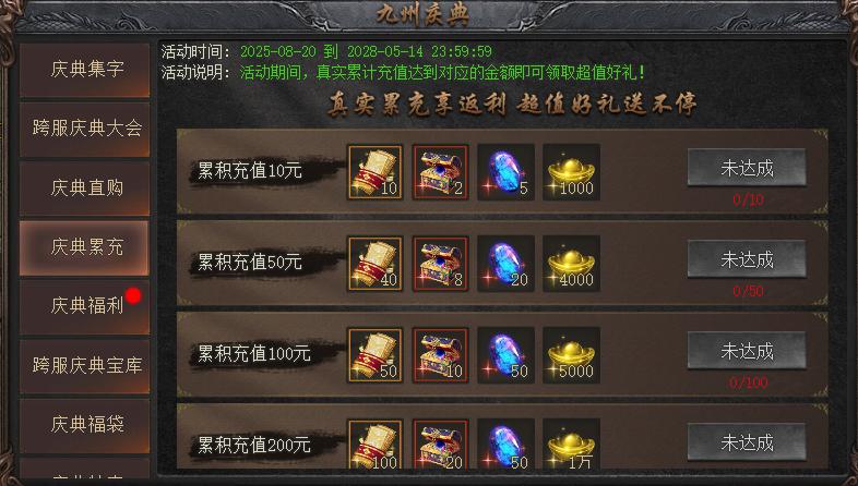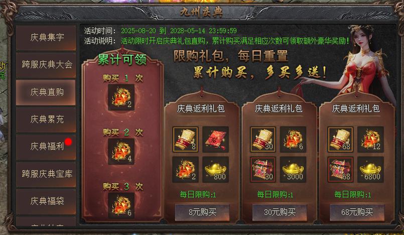 7、「庆典直购」元宝返利+天命石+珍稀道具三重返利;