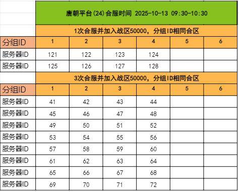大家好,千军纵横将于10月13日9:00-10:00进行合服,合服服务器如下图所示。请玩家提前做好下线准备,以免造成不必要的损失,合服完成时间视具体情况而定,可能会有适当的延迟或者提前,都属于正常情况!