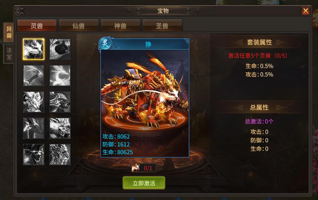 2.异兽、法宝激活后,亦可持续升级,获得更强的属性