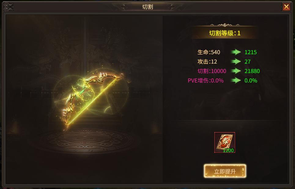 2.玩家可在切割界面,消耗指定材料直接提升切割属性及PVE百分比增伤