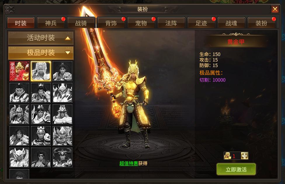 2.存在多种不同类型,时装、神兵、战骑、背饰、宠物、法阵、足迹、战魂、特殊装扮等等